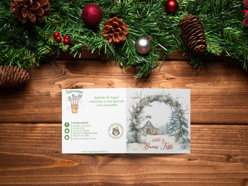 Biglietto realizzato in Carta Piantabile contenente semi, che una volta interrato ed annaffiato darà vita a colorati Fiori di Campo o profumate Erbette Aromatiche. Stampato fronte con soggetto e retro con istruzioni per far germogliare il biglietto. Il Biglietto di Auguri è completo di busta per spedizione! Dimensioni totatali cm 10x20