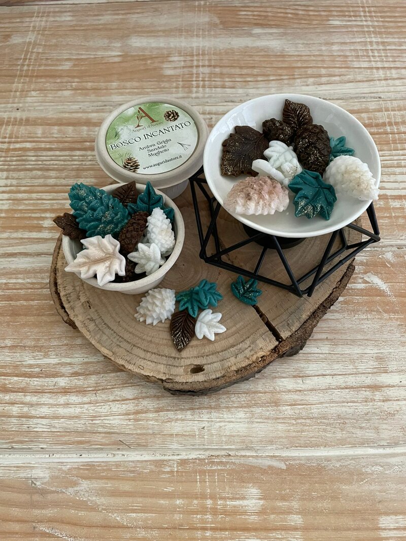 Compreso di brucia essenze, dimensioni cm13x7,5x8 circa e 30 gr circa di tart in cera di soia