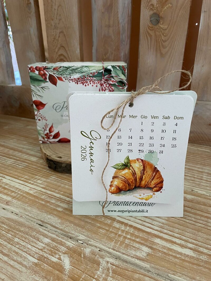 Calendario da tavolo realizzato in carta piantabile, composto da: