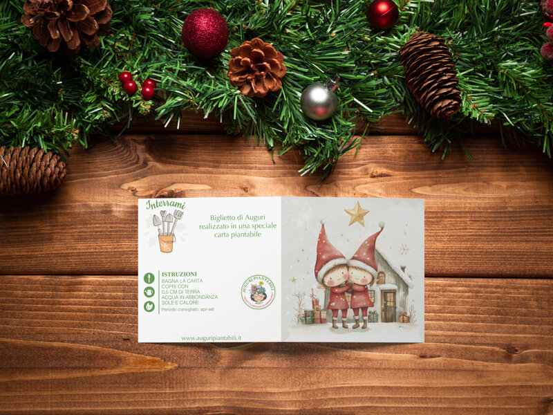 Biglietto realizzato in Carta Piantabile contenente semi, che una volta interrato ed annaffiato darà vita a colorati Fiori di Campo o profumate Erbette Aromatiche. Stampato fronte con soggetto e retro con istruzioni per far germogliare il biglietto. Il Biglietto di Auguri è completo di busta per spedizione! Dimensioni totatali cm 10x20