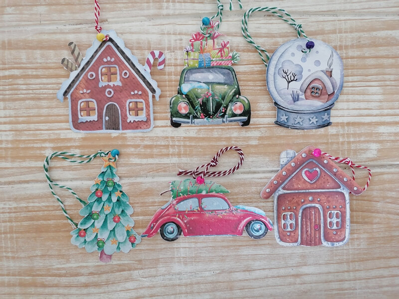 kit composto da 6 addobbi realizzati in carta piantabile.