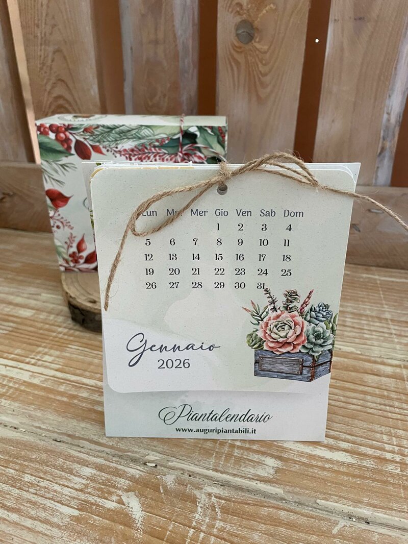 Calendario da tavolo realizzato in carta piantabile, composto da: